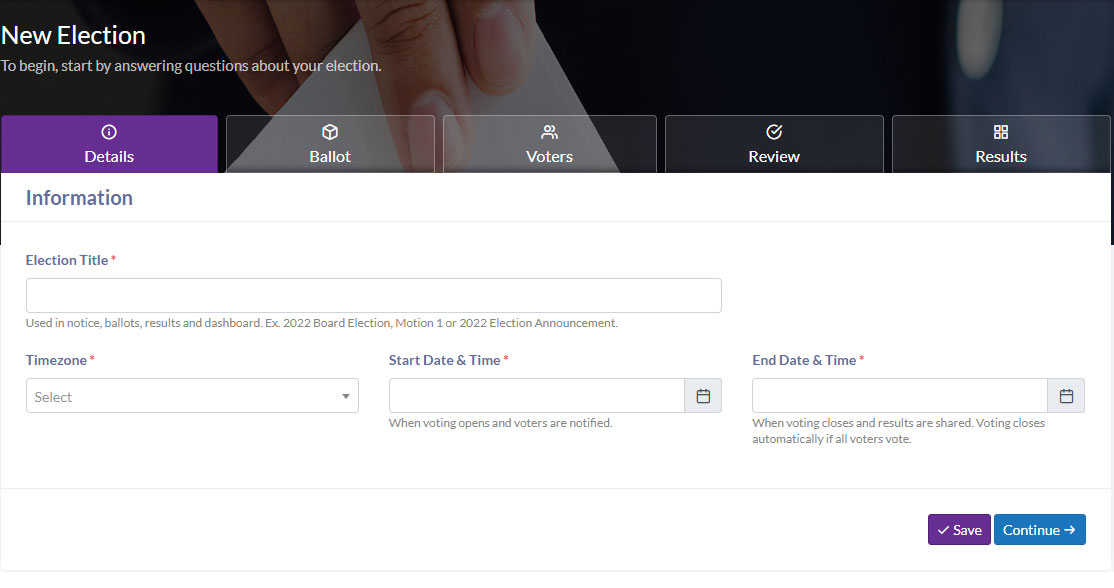 Notify your voters by email or text message about the login credentials and date and time of voting. Voters can login using their web browser or e-ballot mobile app.